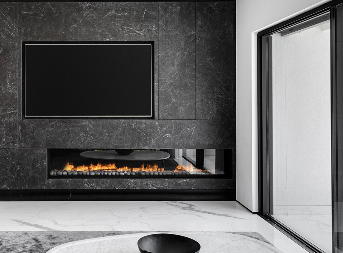 I camini della serie Linea si integrano perfettamente nella parete come elementi di design.