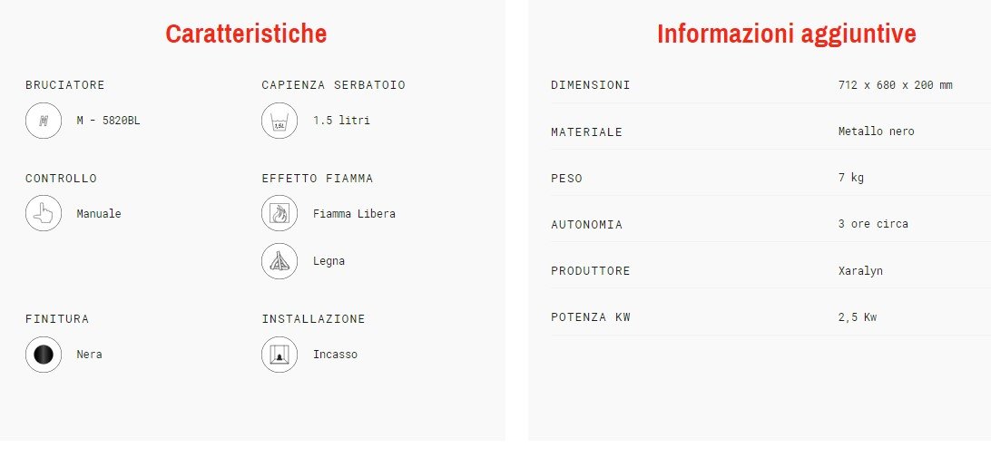 Box metallico nero da incassare all’interno di un camino oppure di una parete creata ad hoc. La struttura è realizzata in metallo di colore nero per bruciatore 5820.