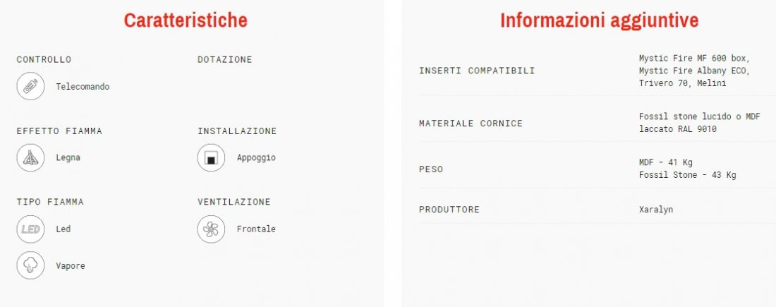 La cornice Kreta viene fornita pronto all’uso, senza bisogno di ricorrere ad un tecnico o ai lavori in muratura: puoi scegliere di installarlo nella stanza che preferisci, anche in camera da letto. La struttura può essere realizzata sia in pietra riscostruita fossil stone che in legno MDF.