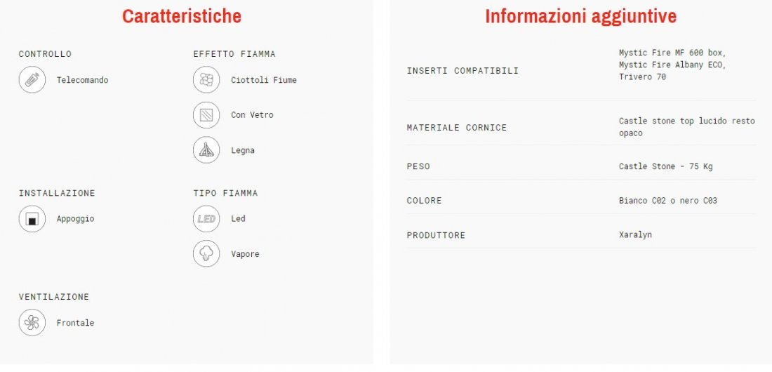 La cornice Kreta viene fornita pronto all’uso, senza bisogno di ricorrere ad un tecnico o ai lavori in muratura: puoi scegliere di installarlo nella stanza che preferisci, anche in camera da letto. La struttura è realizzata in pietra ...