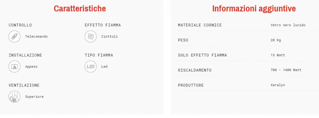 Il camino Trivero 130 va semplicemente appeso alla parete. Il controllo avviene tramite telecomando e l’effetto fiamma è generato da luci LED e sassi. Non necessita di personale specializzato per l’installazione, basta una presa di corrente per godere della magia del camino.