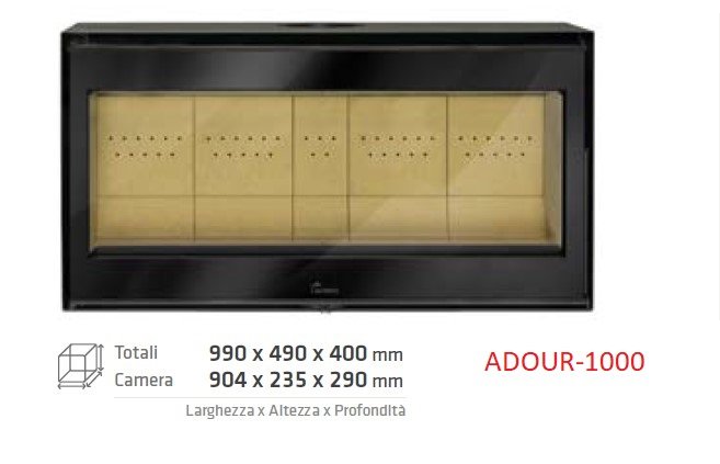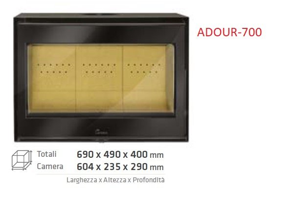 < Inserto ventilato e canalizzabile. < Interni in vermiculite. < Il modello Baltic 800 è dotato di turbina da 125 m3/h con potenziometro. < Altezza di installazione 63 cm. < Funzionamento su letto di brace (no cassetto ...