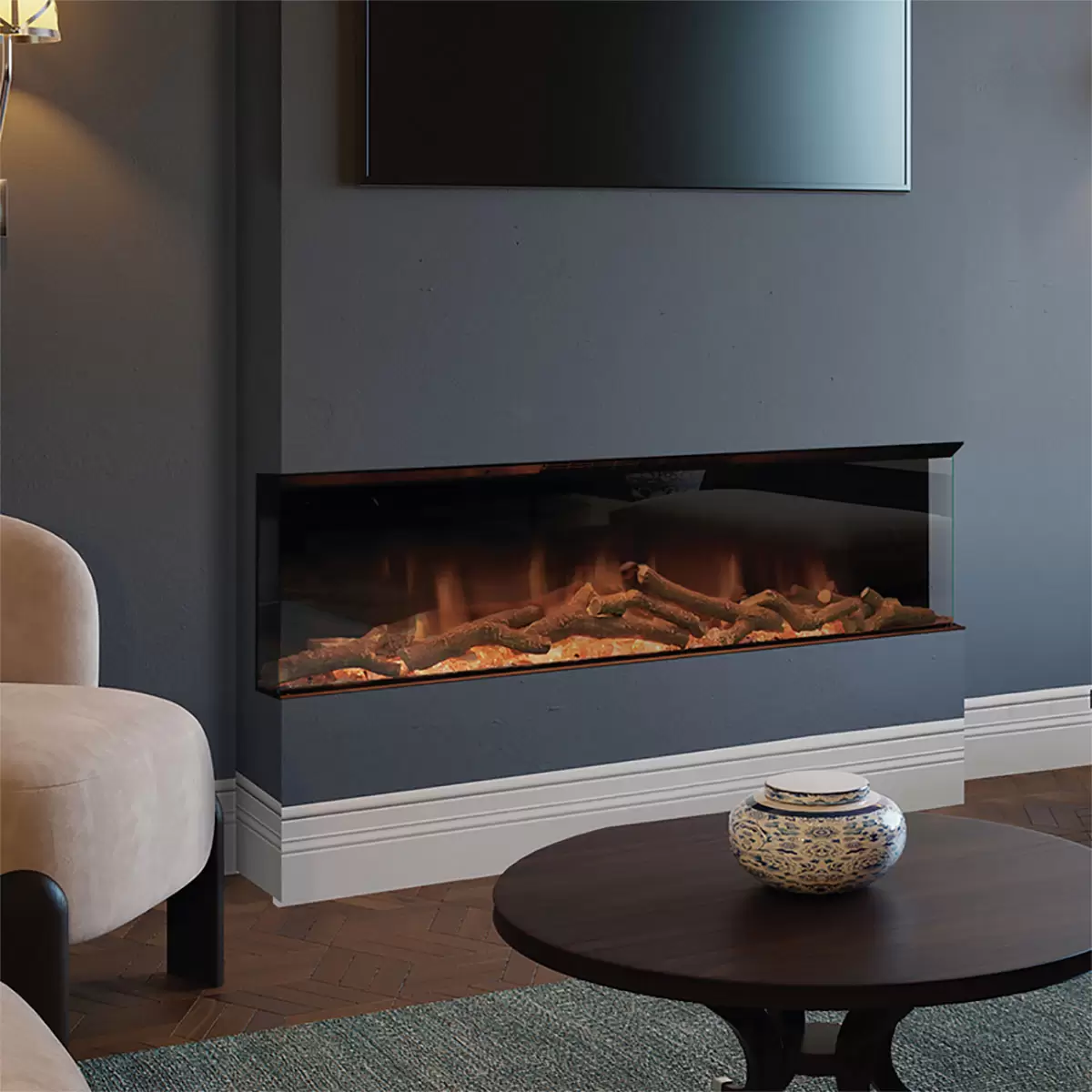 Tra i modelli di ultima generazione, i camini elettrici Ultra HD ti stupiranno per l’effetto realistico della fiamma e della legna in fibraceramica. Il controllo avviene tramite un APP grazie alla quale si possono attivare o disattivare le varie funzioni del camino come: luminosità della fiamma, intensità delle braci, ventilazione dell’aria calda, colore della fiamma. La potenza di riscaldamento è di 1,5Kw, sufficiente per scaldare ambienti di media grandezza. I camini elettrici Ultra HD riescono a creare un effetto fiamma molto più realistico dei tradizionali camini elettrici grazie alla combinazione tra legna ceramica ed un letto di braci e cenere. L’immagine della fiamma viene generata con luci LED a basso consumo, che ti permetteranno di tenere il camino acceso diverse ore durante il giorno senza incidere sui costi di bolletta. Pratici e senza canna fumaria i camini elettrici possono essere installati in qualsiasi ambiente della casa donando eleganza e funzionalità.
