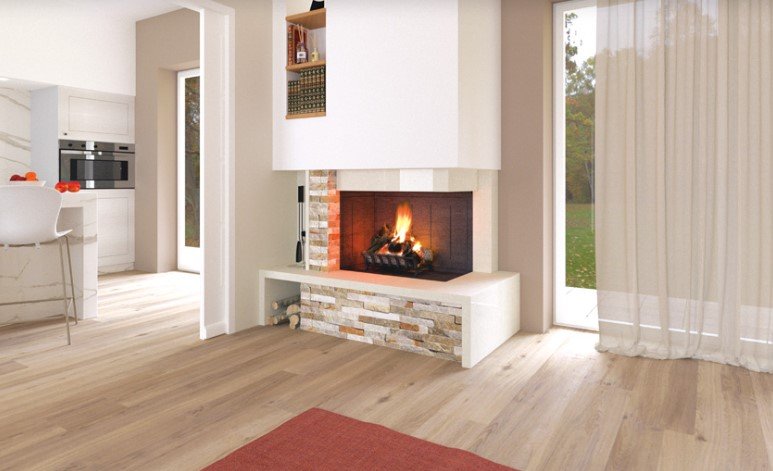 FOCOLARE DS90 REFRATTARIO Caminetto prefrabbricato a focolare aperto completo di parafiamma in ghisa da 9kg, valvola fumi, vaschetta cenere e griglia in ghisa, struttura in conglomerato cementizio alleggerito. Focolare interamente in refrattario ad ...