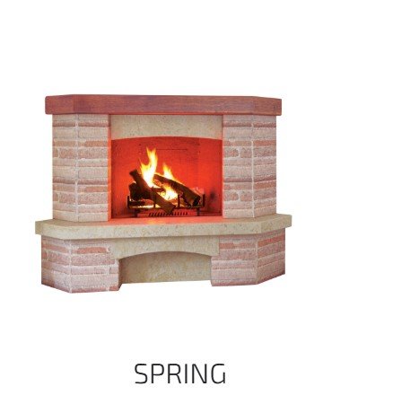 In foto soglia inferiore, archetto, architrave e parte centrale del sottogrado realizzati in Marmo Perlato Svevo anticato; Sottogrado e spallette realizzate in Mattone Antico; Mensola superiore in legno lamellare spessore 12 cm.