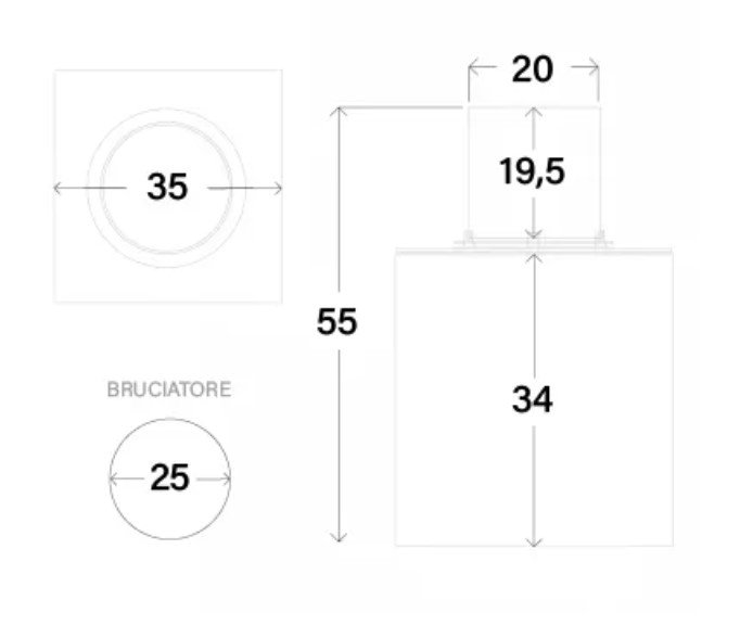 Dimensioni bruciatore: