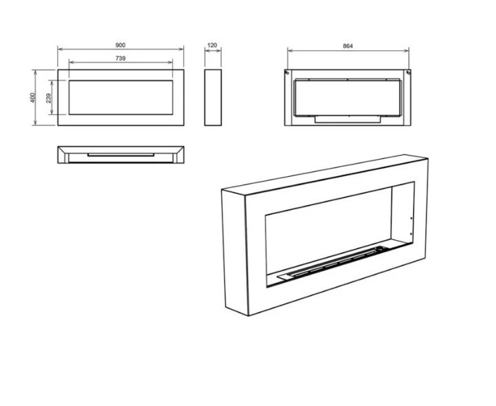 - Accessori: sassi decorativi bianchi + imbuto per riempimento bioetanolo