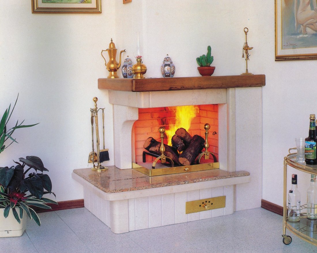 A richiesta si può avere con mensola piano fuoco supportata da granito nero, rosso multicolor, e nella versione più economica, con rosso verona o con altri marmi senza supporto, cioè in massetto.