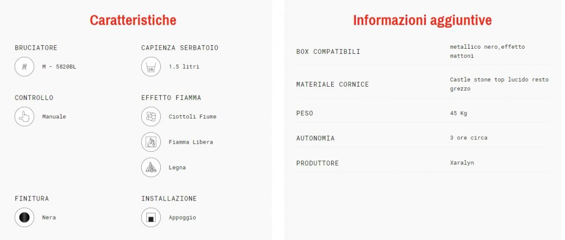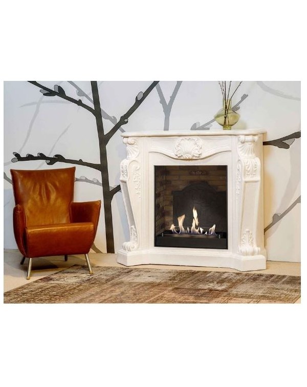 *Versione completa (CAMINETTO BIO LOUIS SUITE COMPOSTO DA CORNICE LOUIS CASTEL STONE BIANCO OPPURE NERO, BOX EFFETTO MATTONI, BRUCIATORE 5820B COMPLETO DI VETRINI,ACCENDINO ED IMBUTO)