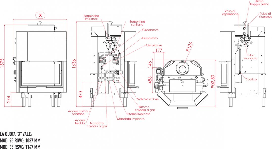 Alle già numerose caratteristiche dell’ECOMULTIFLEX prismatico legna, abbiamo aggiunto l’efficienza e la praticità del gruppo idraulico RSVC* che trasforma il vostro termocamino in una macchina completa anche sotto l’aspetto idraulico.