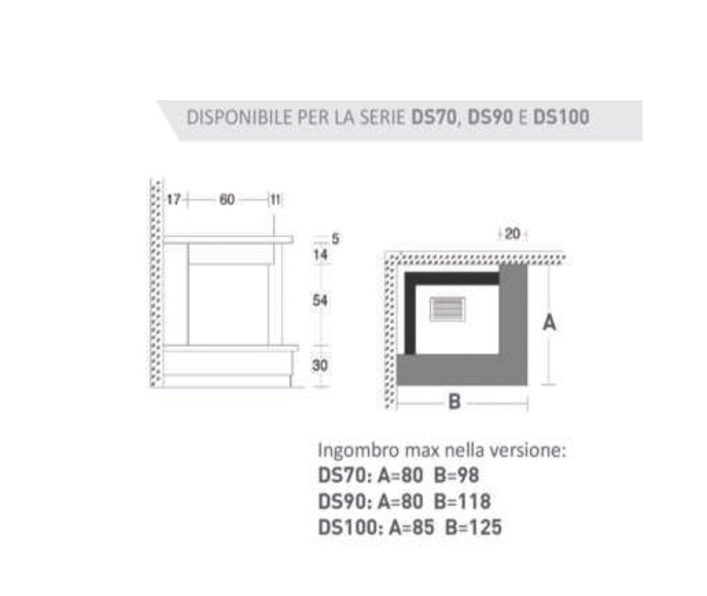 Apertura a destra o a sinistra. Disponibile per la serie DS70, DS90 e DS100 GHISA O REFRATTARIO. (Nella foto l'apertura è a destra con interno DS70 GHISA).