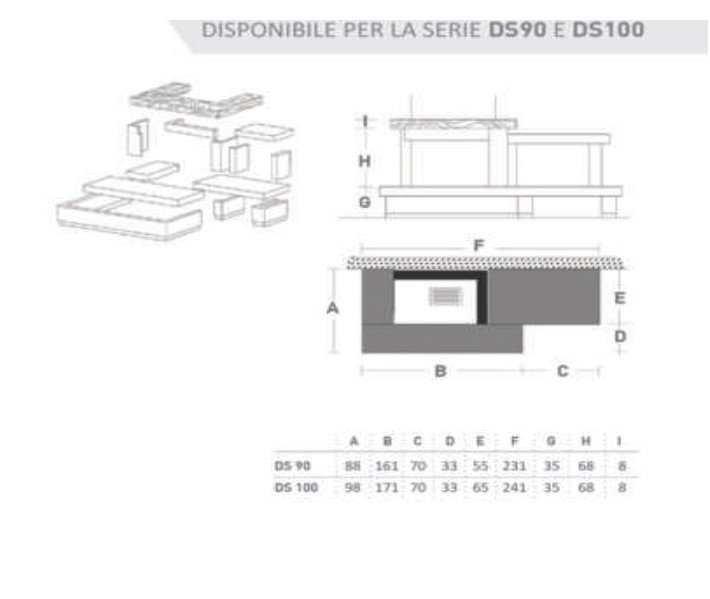 DS100 TGH Kg 80 di GHISA Caminetto in argilla espansa con laterale aperto. Il piano fuoco, la griglia e le pareti laterali sono interamente in ghisa ed hanno un peso complessivo di 80 KG. Lo stesso camino può essere sistemato ...