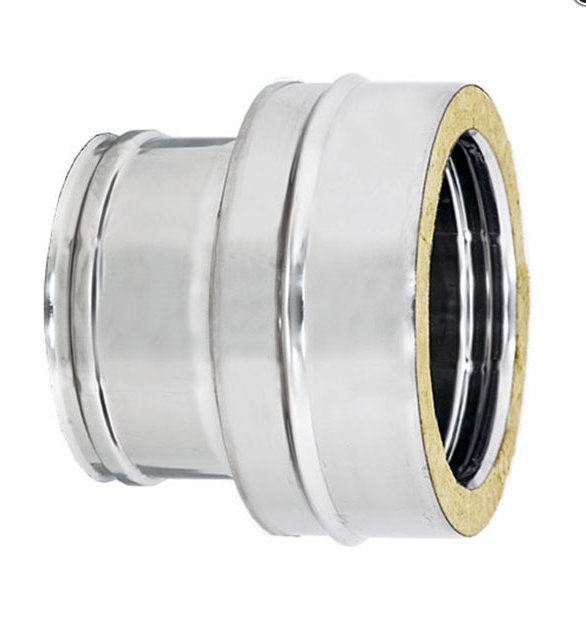 Il Raccordo Caldaia è un elemento di passaggio: da un innesto a parete singola consente il passaggio diretto alla parete doppia di un Sistema Camino secondo la UNI EN 1856-1,o di un Canale da Fumo.
