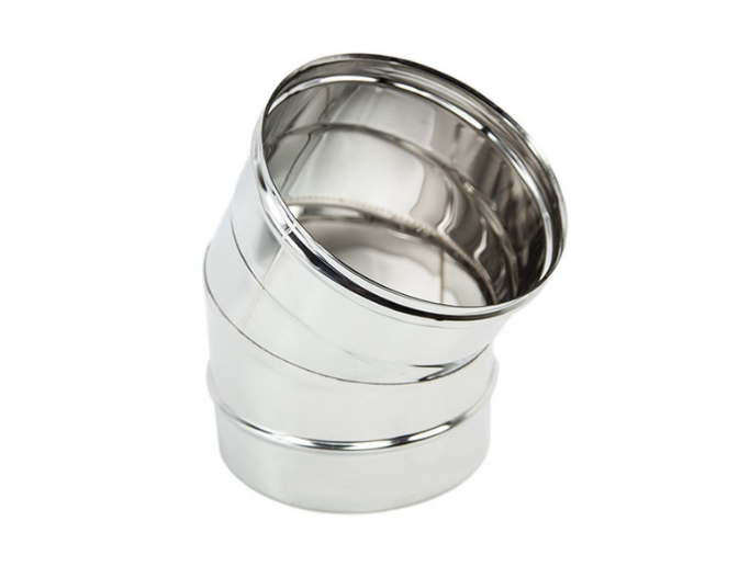 La Curva INOX 45° rappresenta il componente fondamentale per le deviazioni d'asse, dei tratti verticali o sub orizzontali, di un Sistema Camino secondo la UNI EN 1856-1.