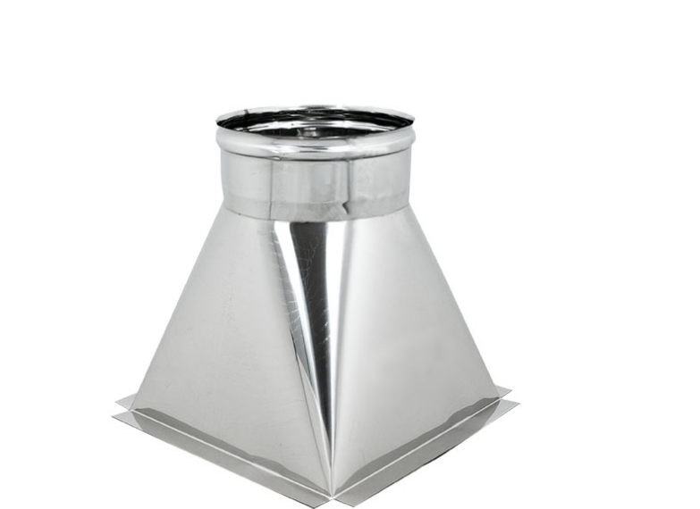 La Tramoggia INOX con aletta rappresenta l'elemento necessario per raccordare un generatore di fumi, camini prefabbricati o generatori a policombustione, con un canale da fumo.Quattro alette perimetrali da mm 25, consentono l'appoggio dell'accessorio sulla muratura, favorendo una più agevole applicazione. Il corpo conico intermedio consente il passaggio dalla sezione quadra a quella tonda, garantendo un più agevole deflusso dei fumi.