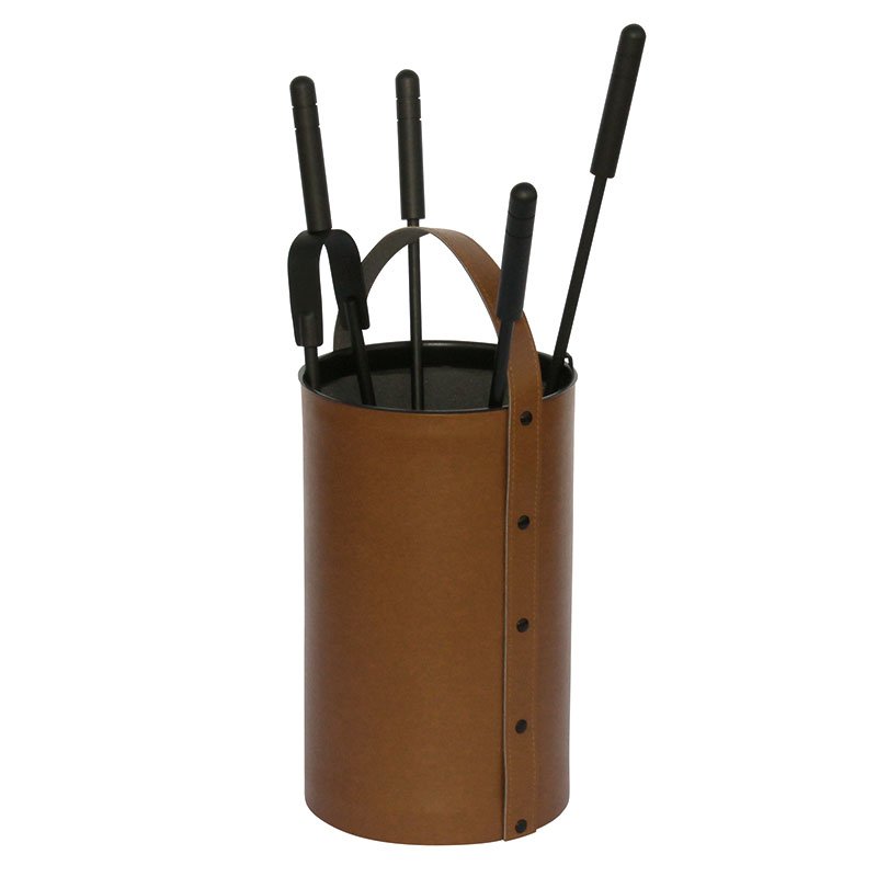 Porta-attrezzi tondo in ECO PELLE nero, 4 accessori Serie: Serie Eco-pelle COD. 50240N Dimensioni: H cm 62 – Ø cm 21 – kg 3,8