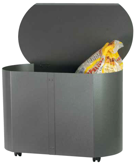Portapellet Serie: Serie Antracite COD. 60113 Dimensioni: H cm 49 – Ø cm 29 – kg 5,0Capacità = kg 15