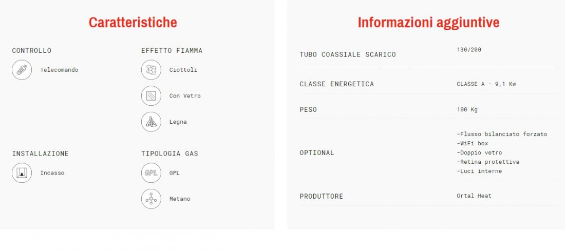 GAS 100 TRIFACCIALE Descrizione Visione panoramica del fuoco, ridotto uso di parti strutturali a vista Sistema Realistic Fire Plus Funzionamento a gas metano o gpl Sistema alimentazione telecomando: 2 batterie AAA Sistema di alimentazione ...