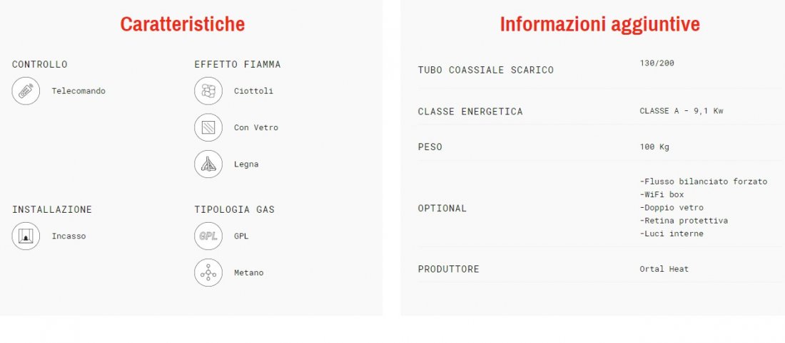 GAS 200 TRIFACCIALE Descrizione Ampio focolare Visione panoramica del fuoco, ridotto uso di parti strutturali a vista Sistema Realistic Fire Plus Funzionamento a gas metano o gpl Sistema alimentazione telecomando: 2 batterie AAA Sistema di ...