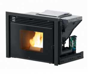 Slide: è ideale per essere inserita in focolari di appena 50 cm di altezza; il serbatoio pellet si carica estraendo completamente la macchina dai binari.