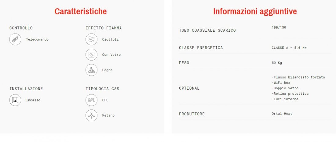 GAS 100 LATERALE SX Descrizione Visione panoramica del fuoco, ridotto uso di parti strutturali a vista Sistema Realistic Fire Plus Funzionamento a gas metano o gpl Sistema alimentazione telecomando: 2 batterie AAA Sistema di alimentazione ...