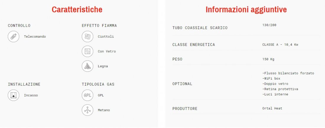 GAS 70 LATERALE DX Descrizione Visione panoramica del fuoco, ridotto uso di parti strutturali a vista Sistema Realistic Fire Plus Funzionamento a gas metano o gpl Sistema alimentazione telecomando: 2 batterie AAA Sistema di alimentazione ...