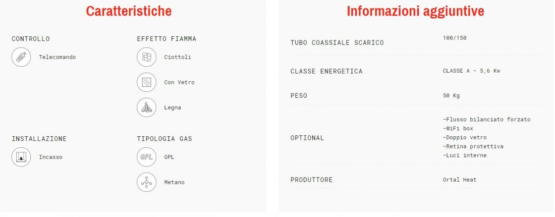 GAS 70 TRIFACCIALE Descrizione Visione panoramica del fuoco, ridotto uso di parti strutturali a vista Sistema Realistic Fire Plus Funzionamento a gas metano o gpl Sistema alimentazione telecomando: 2 batterie AAA Sistema di alimentazione ...