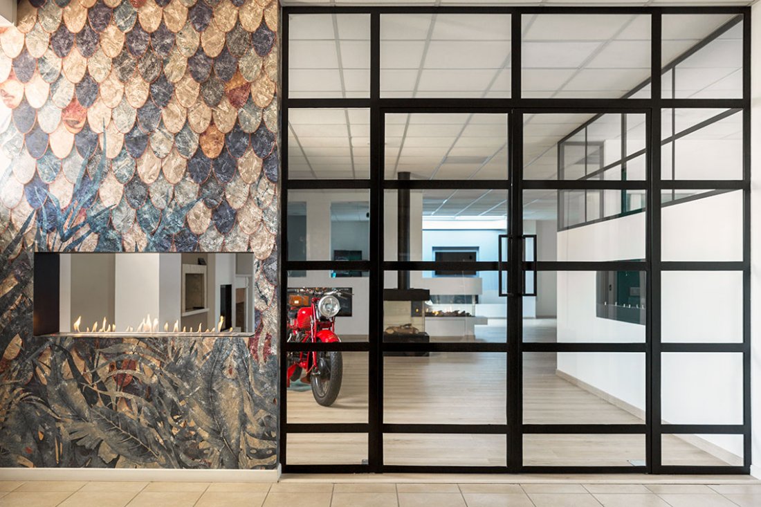 Box metallico effetto mattoni da incassare all’interno di un camino oppure di una parete creata ad hoc. La struttura è realizzata in metallo mentre l’effetto mattoni è realizzato con dei pannelli in vermiculite lavorata per ...