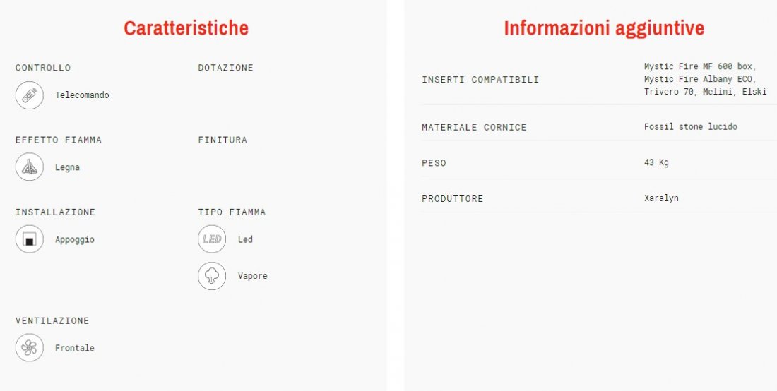 La cornice Kreta viene fornita pronto all’uso, senza bisogno di ricorrere ad un tecnico o ai lavori in muratura: puoi scegliere di installarlo nella stanza che preferisci, anche in camera da letto. La struttura è realizzata in pietra ...