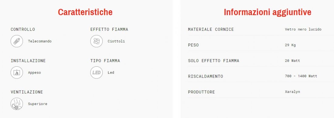 Il camino Trivero 180 va semplicemente appeso alla parete. Il controllo avviene tramite telecomando e l’effetto fiamma è generato da luci LED e sassi. Non necessita di personale specializzato per l’installazione, basta una presa di corrente per godere della magia del camino.