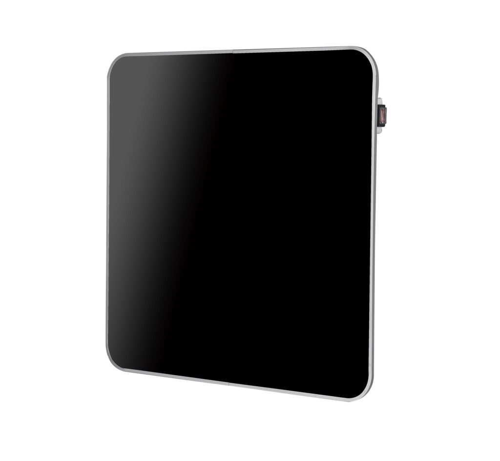Pannello riscaldante da fissare al muro; elegante finitura in vetro nero, costruzione robusta con design ultraleggero e sottile. Filo di riscaldamento in silicone.