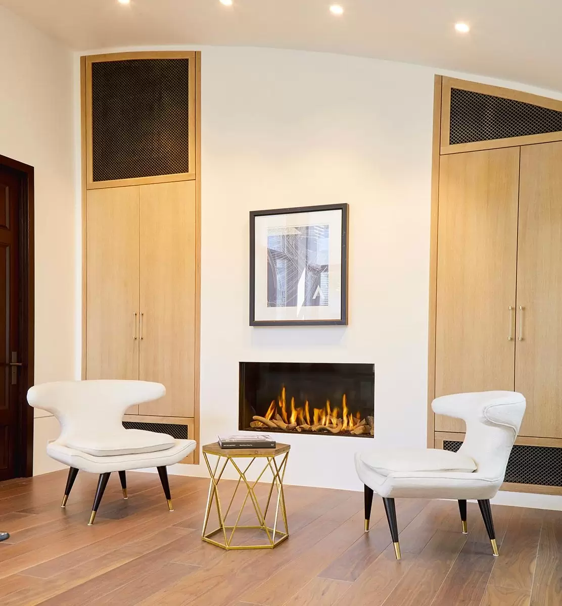 I camini della serie Linea si integrano perfettamente nella parete come elementi di design.