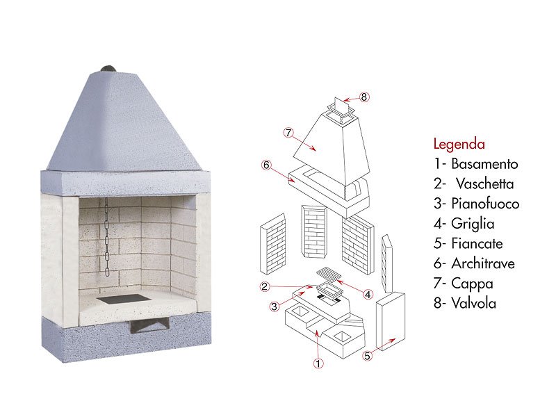 Struttura realizzata in conglomerato cementizio alleggerito. Focolare realizzato in refrattario ad alto tenore di allumina.
