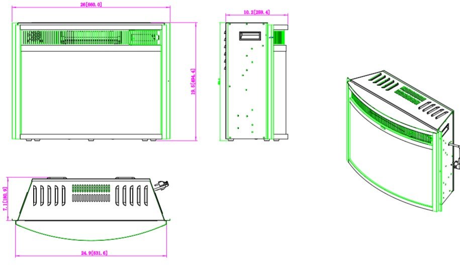 Specificazioni Camino elettrico Pluton Dimensioni ( A*L*P) 592*482*130 mm Tensione (V) 220/240 Potere (W) 2000 Riscaldamento superficie (m²) 20 Peso 9 kg Intensità di fiamma Si Fiamma ...