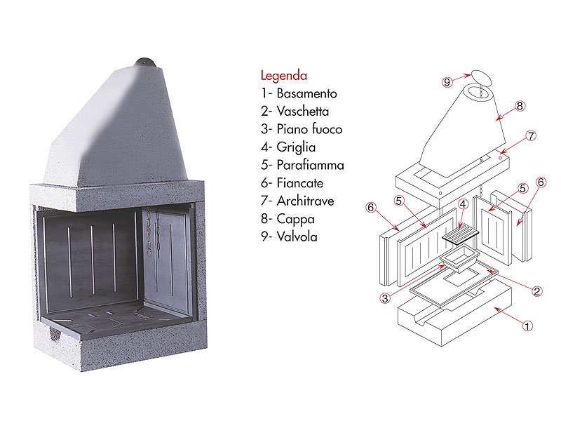 DS70 TGH Kg 55 di GHISA Caminetto reversibile con laterale aperto. Può essere installato con l'apertura sia a destra che a sinistra. Il piano fuoco ed il parafiamma sono interamente in ghisa da mm. 10 di spessore. CANNA FUMARIA Altezza m 3-6: Sezione da 200 mm di diametro. |