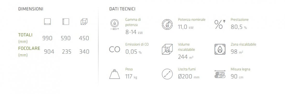 Inserto camino a legna con focolare in Alutec® e anta battente con chiusura automatica soft closing, per facilitare le operazioni di caricamento e pulizia. Grazie ad ingombro e pesi contenuti, questo inserto è particolarmente adatto per ...