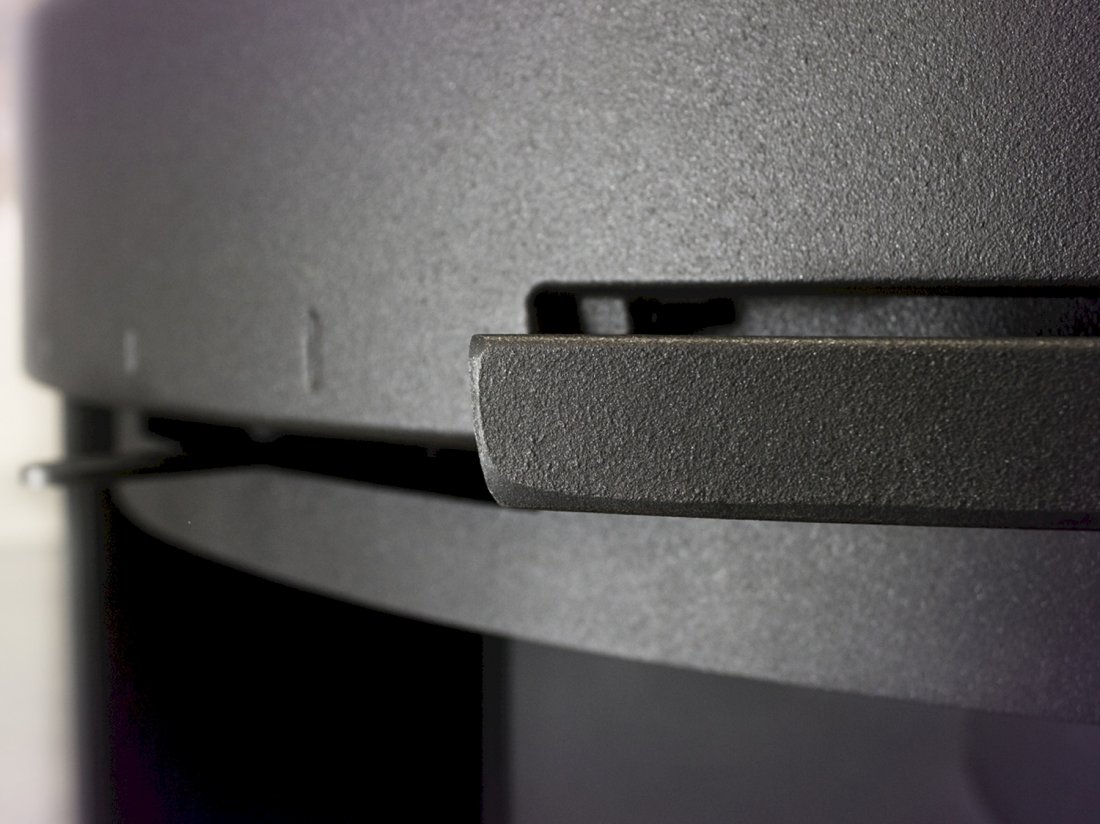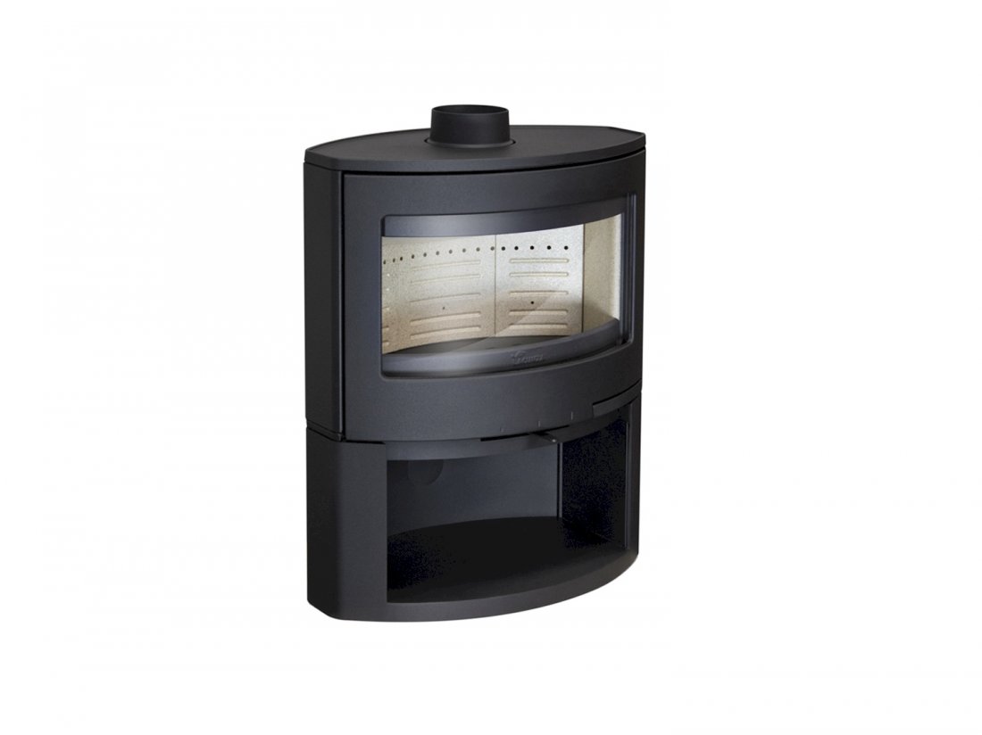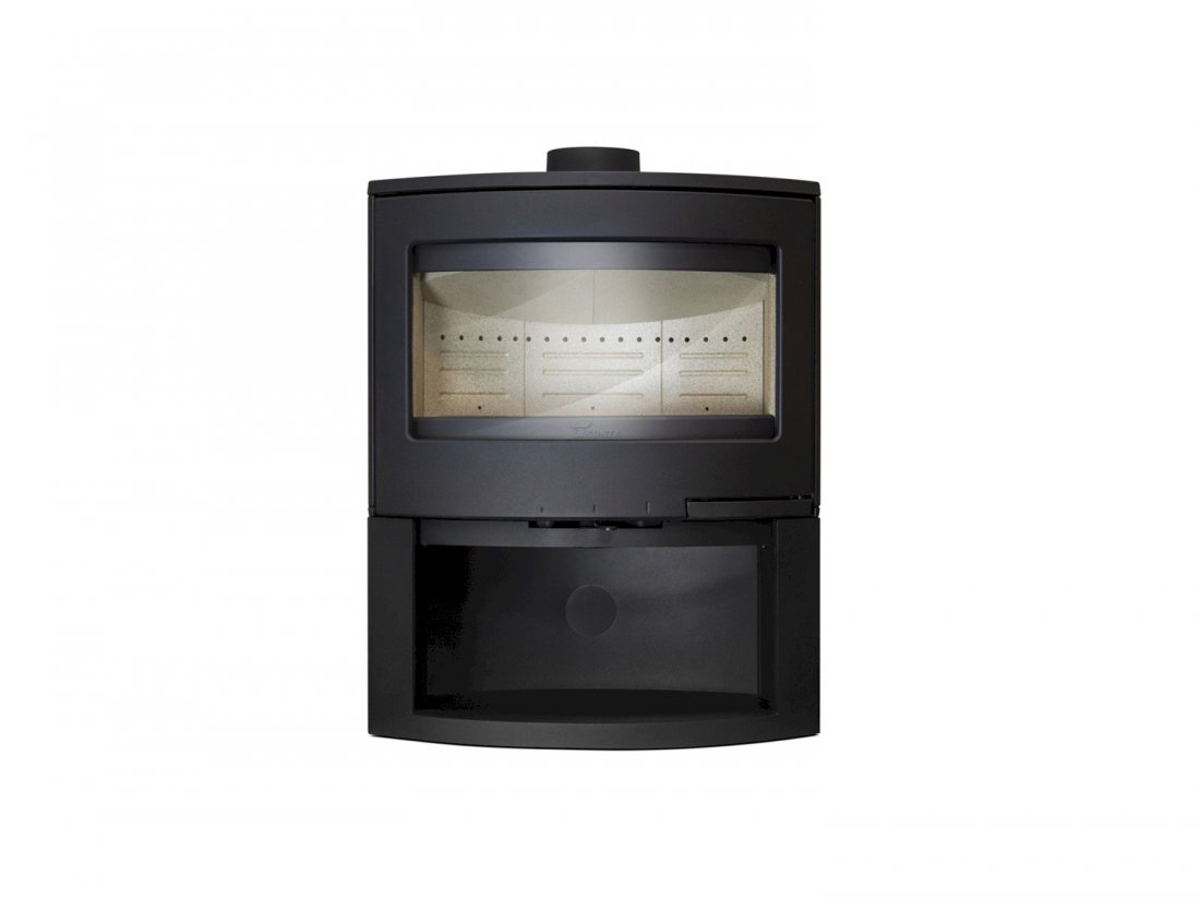 Stufa in acciaio e ghisa. < Interni in vermiculite. < Griglia in ghisa e piano fuoco in vermiculite. < Sistema a doppia combustione. < Cassetto porta legna inferiore. < 3 controlli per la combustione. < Uscita fumi superiore.
