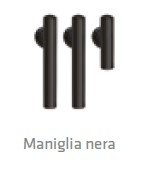 < Maniglia cromata di serie. A richiesta maniglia nera.