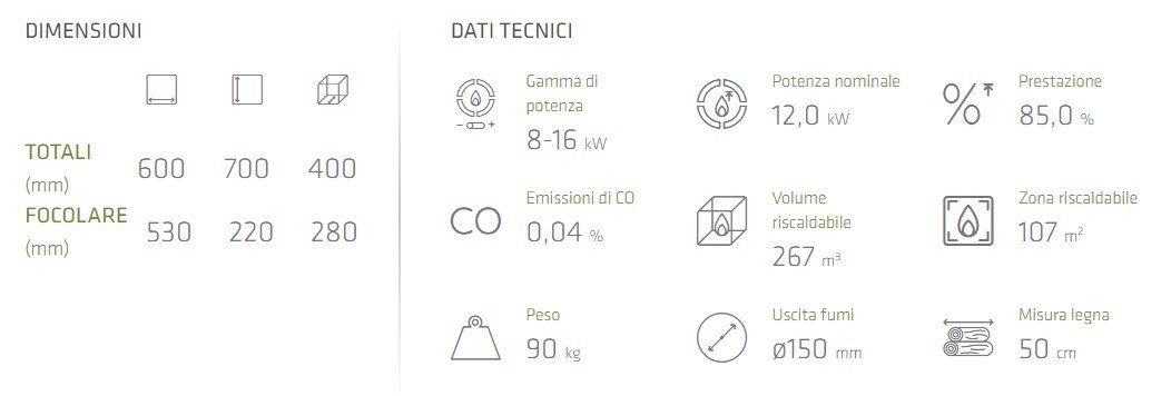 Stufa in Ghisa. < Prodotto con certificazione ermetica. < Controllo della combustione con un unico comando. < Uscita fumi posteriore o superiore. < Doppia combustione. < Interni in vermiculite. < Interni in ghisa opzionale.