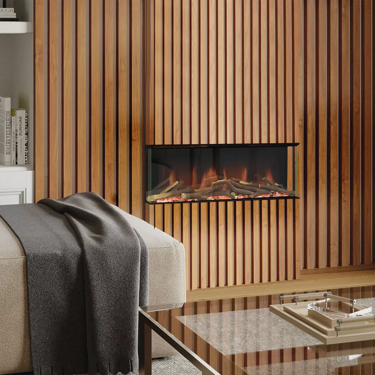 Tra i modelli di ultima generazione, i camini elettrici Ultra HD ti stupiranno per l’effetto realistico della fiamma e della legna in fibraceramica. Il controllo avviene tramite un APP grazie alla quale si possono attivare o disattivare le varie funzioni del camino come: luminosità della fiamma, intensità delle braci, ventilazione dell’aria calda, colore della fiamma. La potenza di riscaldamento è di 1,5Kw, sufficiente per scaldare ambienti di media grandezza. I camini elettrici Ultra HD riescono a creare un effetto fiamma molto più realistico dei tradizionali camini elettrici grazie alla combinazione tra legna ceramica ed un letto di braci e cenere. L’immagine della fiamma viene generata con luci LED a basso consumo, che ti permetteranno di tenere il camino acceso diverse ore durante il giorno senza incidere sui costi di bolletta. Pratici e senza canna fumaria i camini elettrici possono essere installati in qualsiasi ambiente della casa donando eleganza e funzionalità.