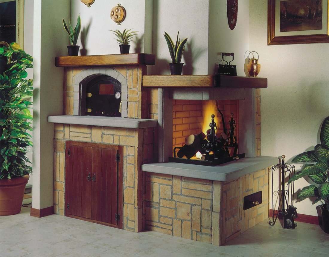 Versioni: angolo o parete, sinistra o destra, con forno o senza, piccola o grande, con mattoni mezzane, con mosaico, con bozzette, con massello di pietra.