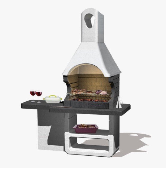 Barbecue in calcestruzzo alleggerito. Piano lavoro con ampio spazio d'appoggio laterale. Focolare con griglia romata regolabile in 3 altezze. Dotato di contro-cappa in metallo per consentire anche l'utilizzo della legna. Base con pratico ripiano. ...