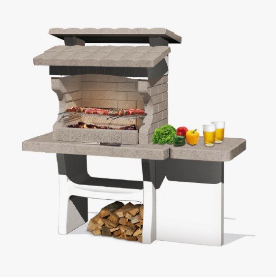 Barbecue in calcestruzzo alleggerito. Piano lavoro con ampio spazio d'appoggio laterale. Focolare con griglia romata regolabile in 3 altezze. Dotato di contro-cappa in metallo per consentire anche l'utilizzo della legna. Base con pratico ripiano. ...