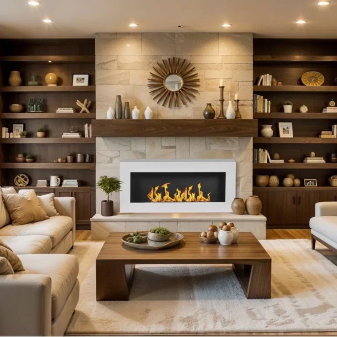 I nostri caminetti a bioetanolo, non necessitano di canna fumaria perché la combustione del bioetanolo non produce sostanze tossiche né odori né fumi che devono essere portati fuori attraverso la canna fumaria.