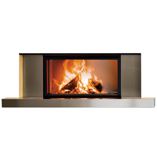 Rivestimento per camino a gas frontale costituito da una cornice in acciaio inox spazzolato irregolarmente oppure in acciaio verniciato con effetto ruggine spazzolato. E' possibile averlo anche con materiali diversi e su misura. ...