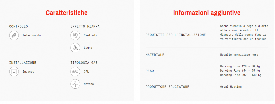 Se hai a disposizione una canna fumaria e sei alla ricerca di un focolare con taglio in 16:9, il Dancing Fire è la solzuione che fa per te. Potrai godere di una fiamma senza vetro ma controllabile tramite telecomando. Il Dancing Fire è disponibile in 4 dimensioni: 75,129,154 e 202 sia a metano che gpl il prezzo non cambia.