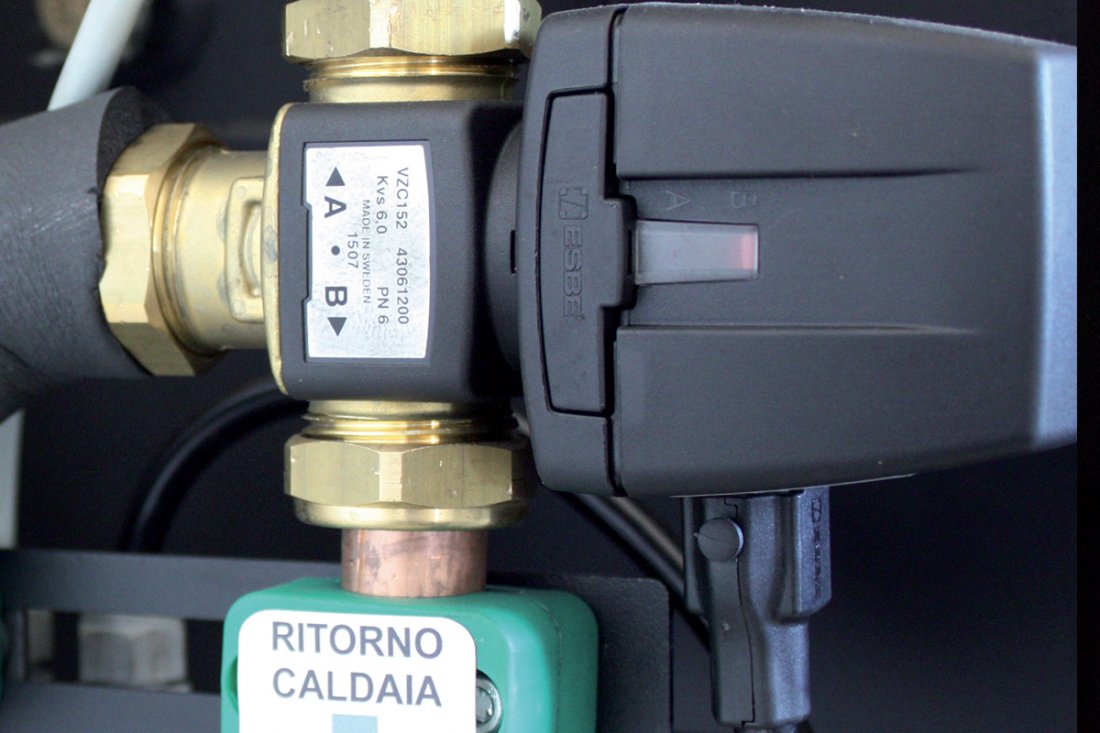 – Valvola a 3 vie con funzione automatica di commutazione al di sotto dei 40°c su caldaia a gas;