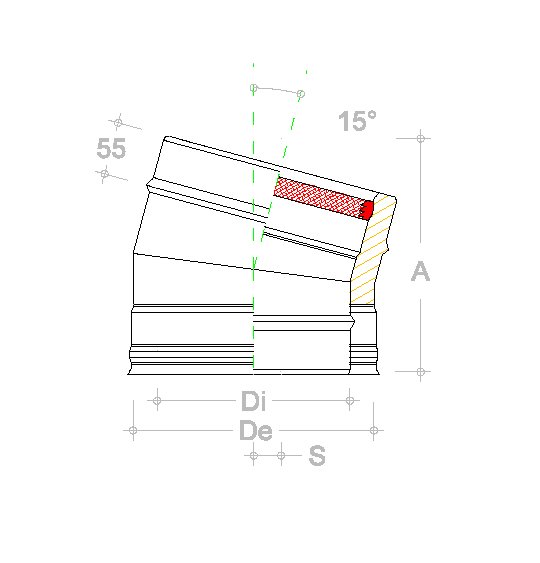 La Curva 15° a parete doppia,è il componente fondamentale per le deviazioni d'asse,dei tratti verticali o sub orizzontali,di Canali da Fumo o di Sistemi