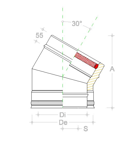 La Curva 30° a parete doppia,è il componente fondamentale per le deviazioni d'asse,dei tratti verticali o sub orizzontali,di Canali da Fumo o si Sistemi