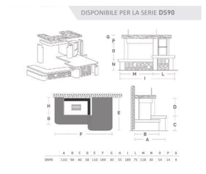 DS90 TGH Kg 68 di GHISA Caminetto reversibile con laterale aperto. Può essere installato con l'apertura sia a destra che a sinistra. Il piano fuoco ed il parafiamma sono interamente in ghisa da mm. 10 di spessore. CANNA FUMARIA Altezza ...